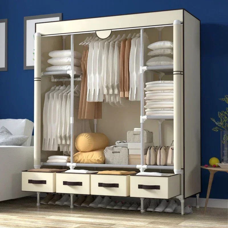 Dustproof Wardrobe Multi-Layer Storage Rack with Curtains Simple Bookshelf Bedroom Wardrobes Large Capacity Fcloset Organizer
