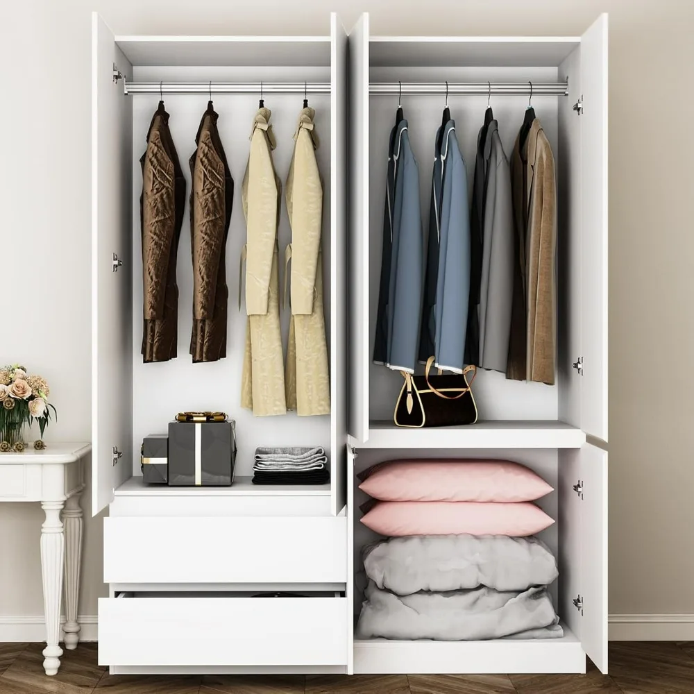 Wardrobe Closet, Armoire with Drawers and Shelves, Armoires and Wardrobes with Hanging Rod, White Wooden Wardrobe Closet