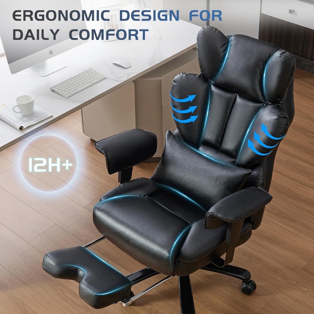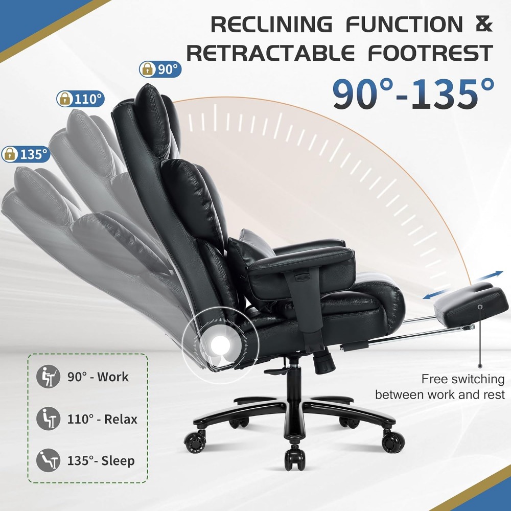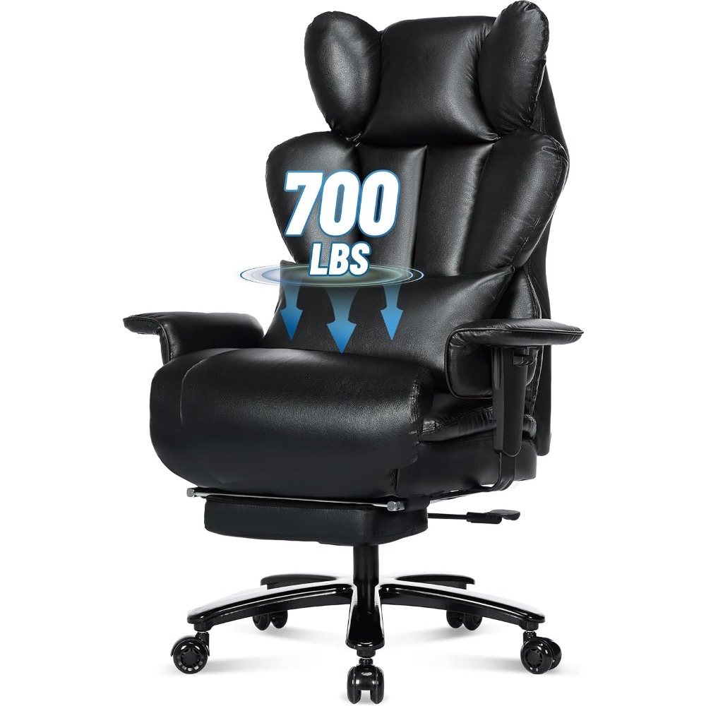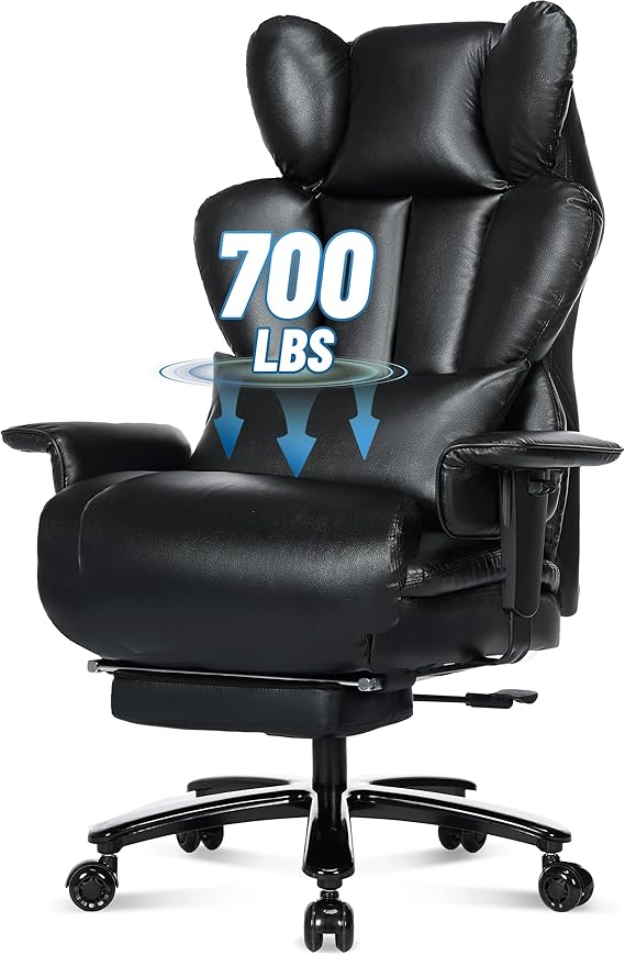 Silla de oficina grande y alta de 700 libras con reposapiés y almohada lumbar ajustable, silla ejecutiva grande y resistente, asiento ancho, ergonómica.