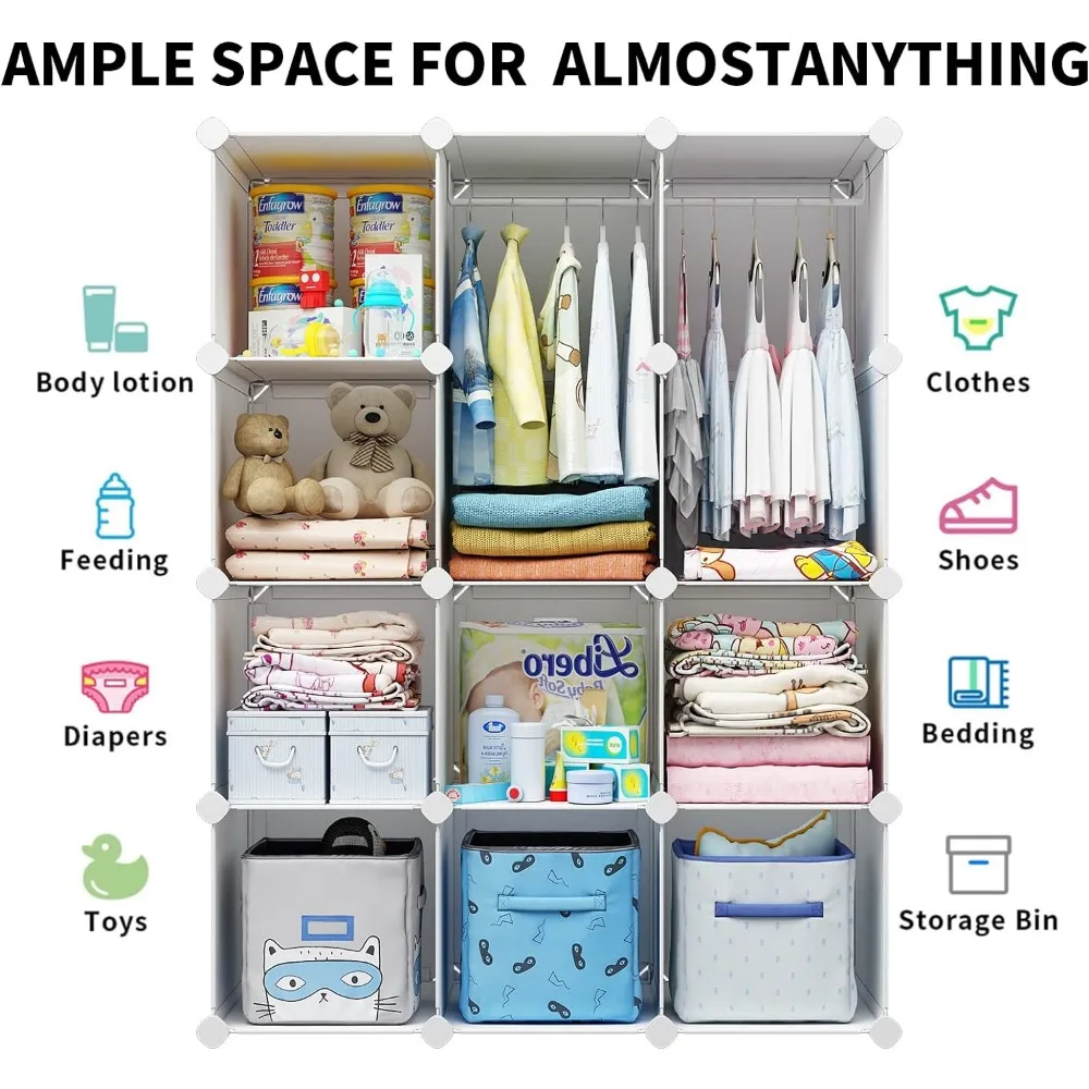 - 【Generous Storage Capacity】The baby wardrobe offers a multitude of storage options, making it perfect for a baby's closet or a child's wardrobe. The white wardrobe closet is capable of storing and hanging a considerable amount of clothing, shoes, accessories, and toys, serving as an excellent kids' storage organizer.