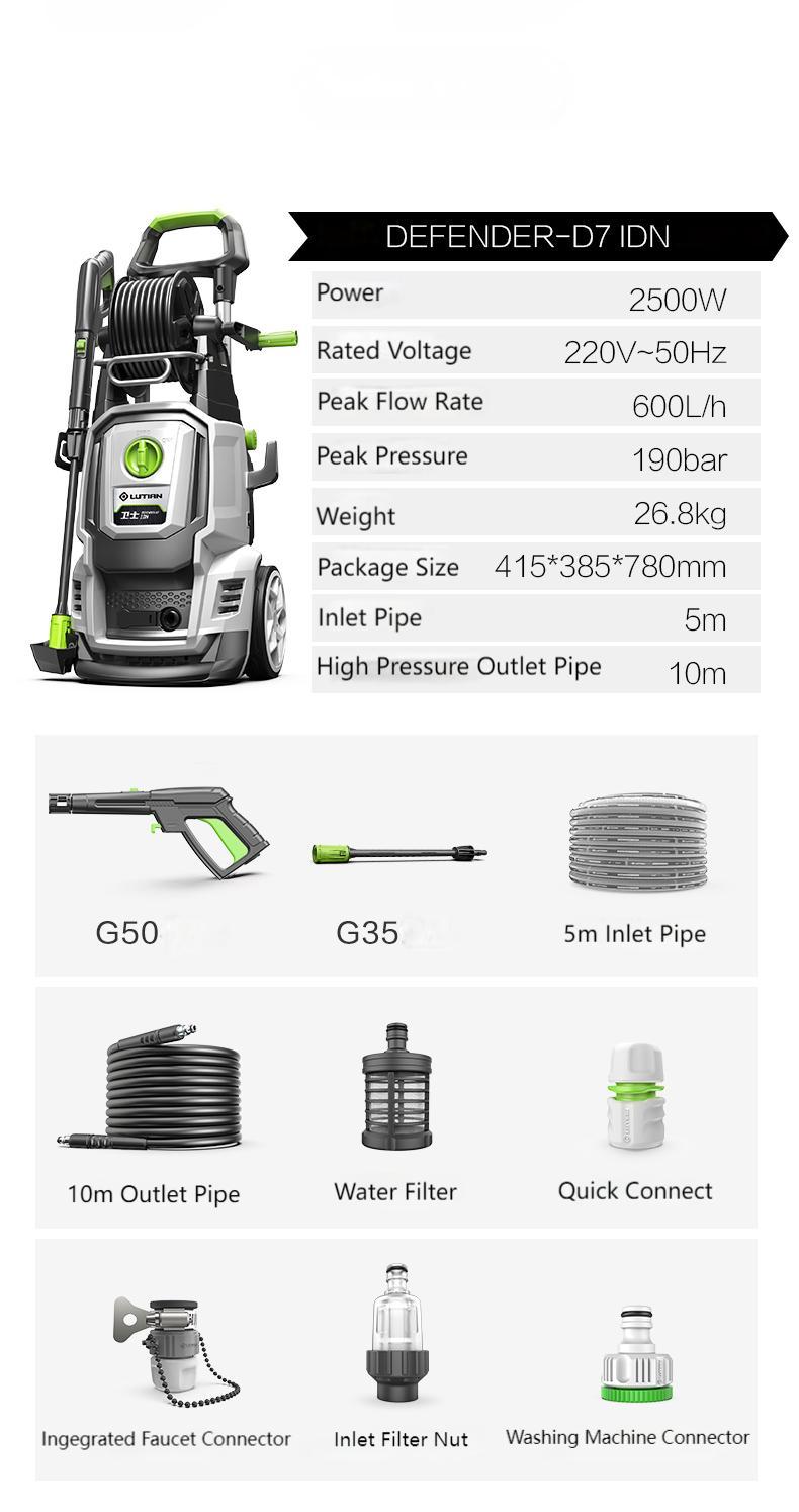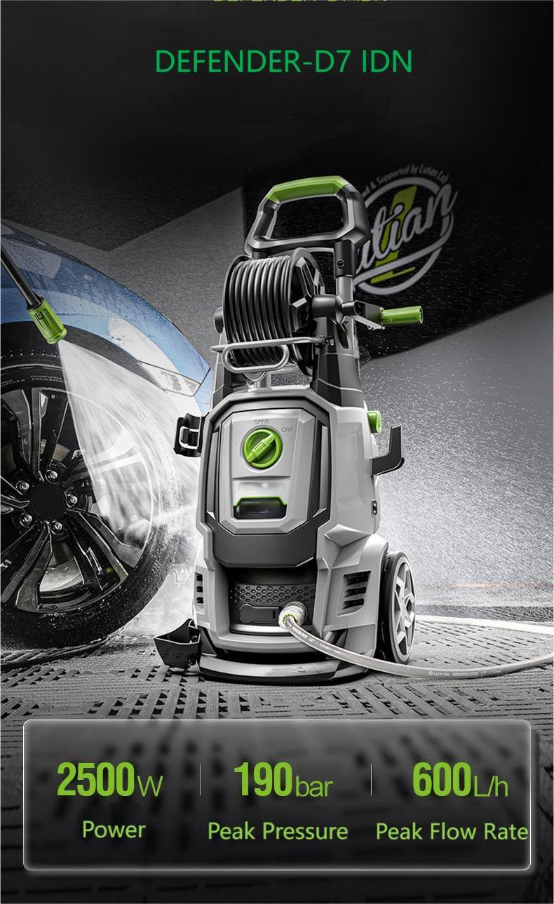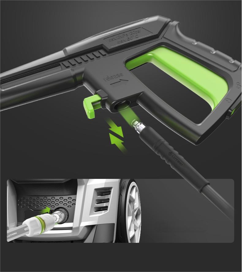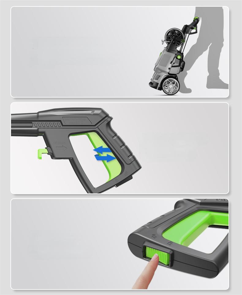Equipped with a 2500 watt motor, giving it strong cleaning capabilities. It is suitable for daily cleaning of sturdy surfaces and equipment, such as washing cars, driveways, decks, fences, garden equipment, etc. It can effectively remove dirt, grime, pollutants, and surface buildup, making cleaning tasks more efficient and thorough.