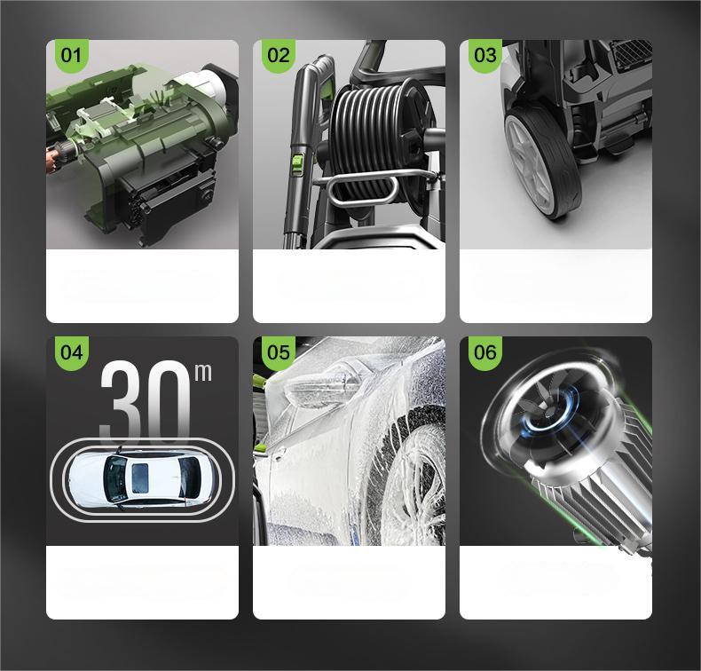 Using dual protection water pump with overload and overheating protection to ensure the normal operation of the pump, reduce wear and tear, and extend the service life of the high pressure washer.