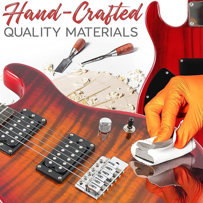 - CONTROL ROTATORIO Y SELECTOR DE PASTILLAS DE 3 VÍAS: El kit de guitarra eléctrica de 6 cuerdas cuenta con controles rotatorios cromados para volumen y tono. El selector de 3 vías cambia el tono de la guitarra entre las pastillas humbucker delanteras, traseras o ambas.