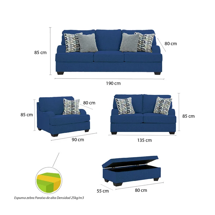 Tela Tejida de alta resistencia, Espuma Zebra Paraiso de alta densidad y Madera Tornillo
