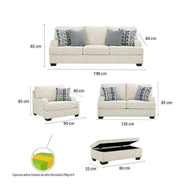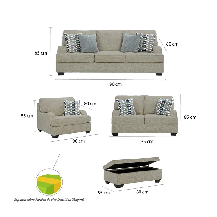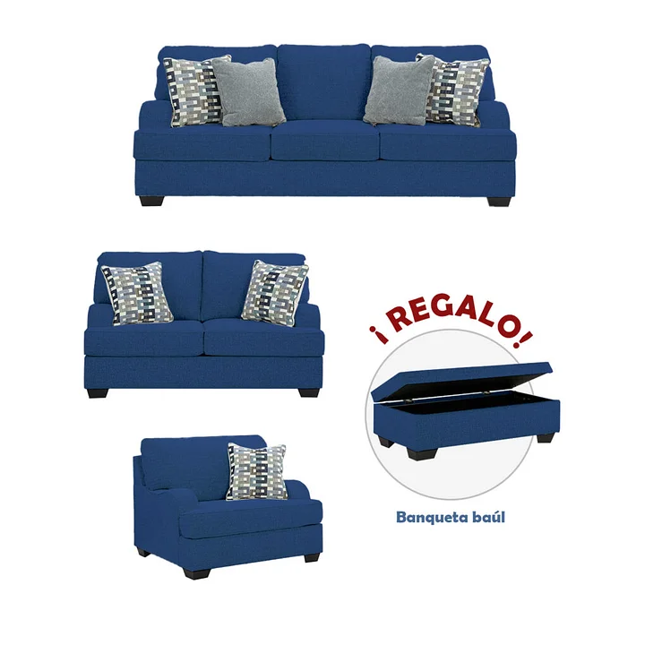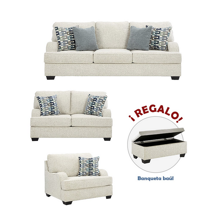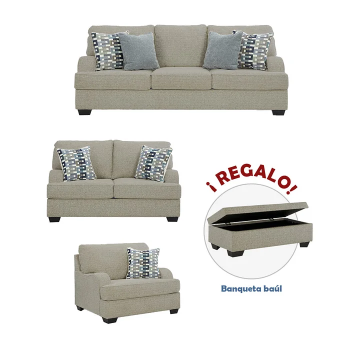 Juego de sala 3-2-1 + Banqueta baúl de regalo Irem Gris plata