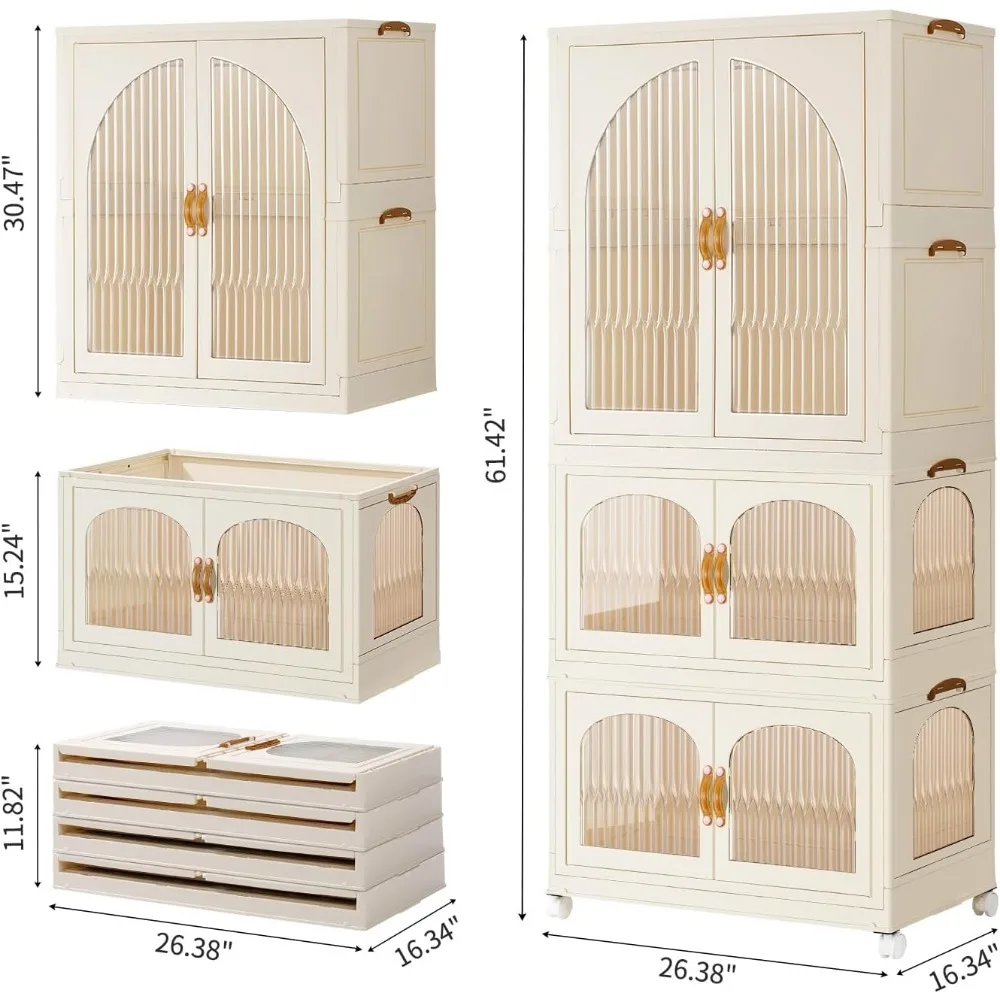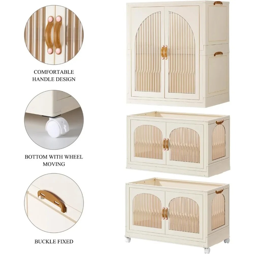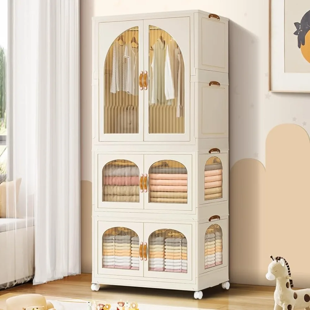 - PORTABLE AND DURABLE Closet for kids is made of high-quality plastic(PP+ABS) and will last longer.The buckles on the side can be buckled more firmly when stacking clothes shelving,and the portable closet will not be easily tipped and slipped.Transparent visible double doors,comfortable handle and wheel design make the kids dress up rack easier to move and clean in the bedroom,creating a modern and stylish children's room,daughters room.