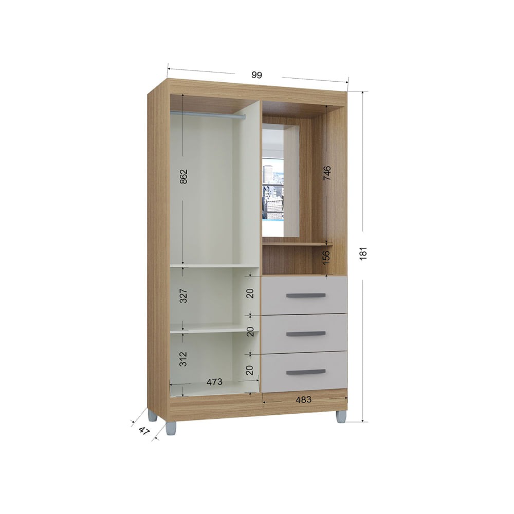 Ropero Portugal 2 Puertas 3 Cajones Blanco - Ropero Portugal 2 Puertas 3 Cajones Damasco