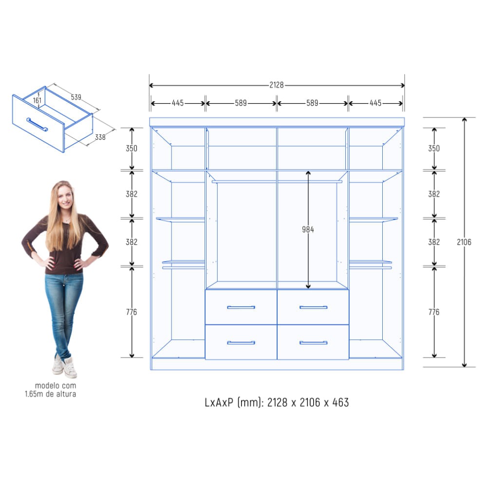 Ropero Supremo 6 Puertas 4 Cajones