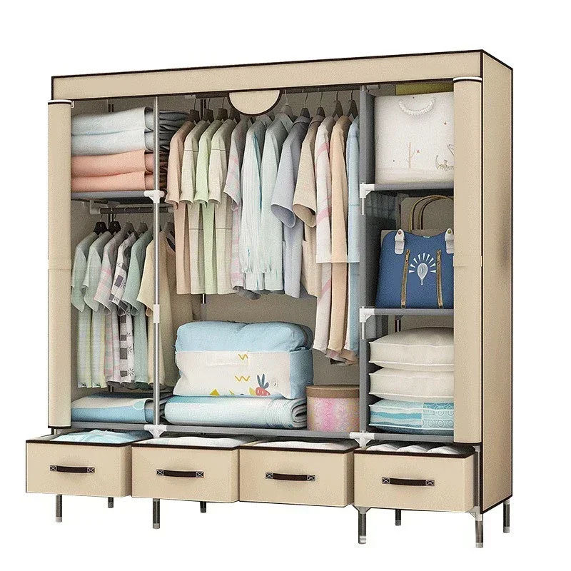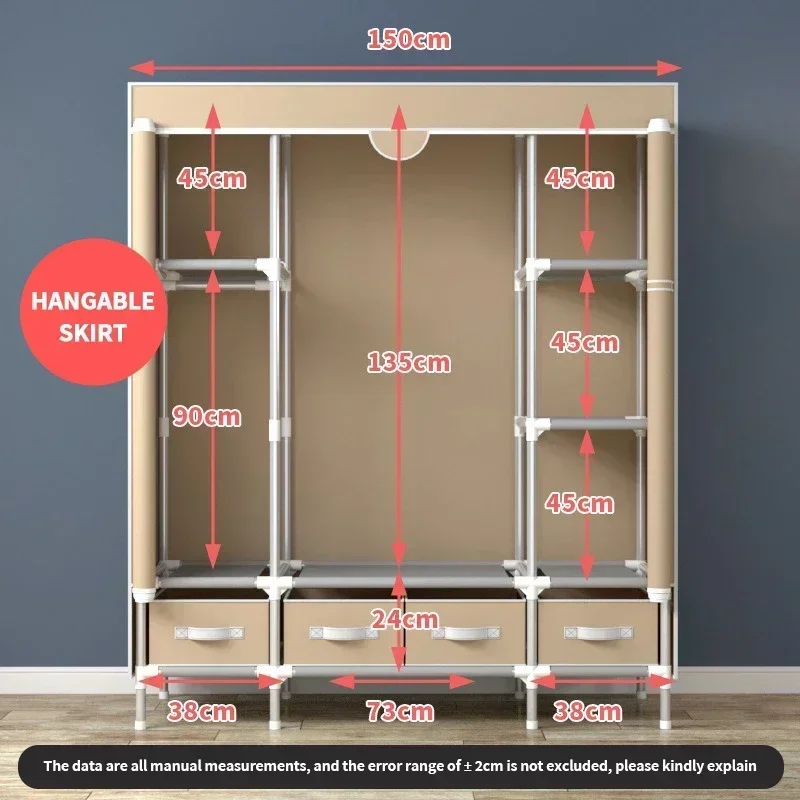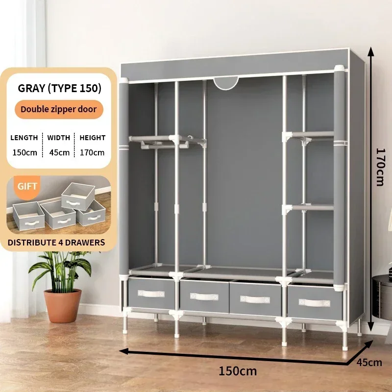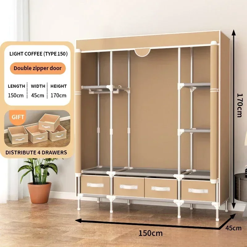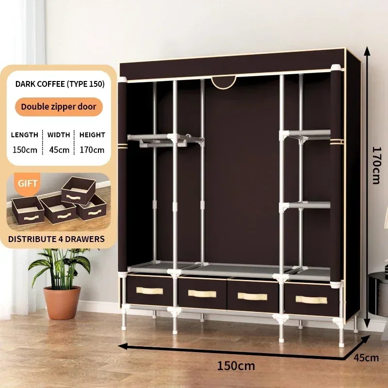 Simple wardrobe for two people, enlarged Storage locker, economical assembly, cloth wardrobe, 150CM, with 4 storage boxes