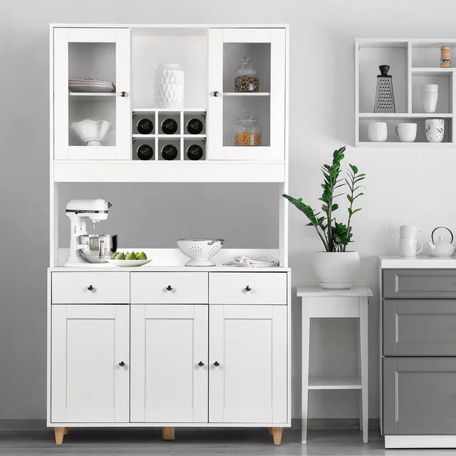 Microwave cabinet brings additional storage and function to your kitchen and dining space