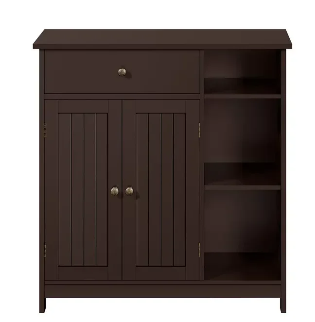 Finished in a weathered medium brown, this laminated particleboard and MDF cabinet is perfect for any rustic, cottage, shabby chic or casual spaces